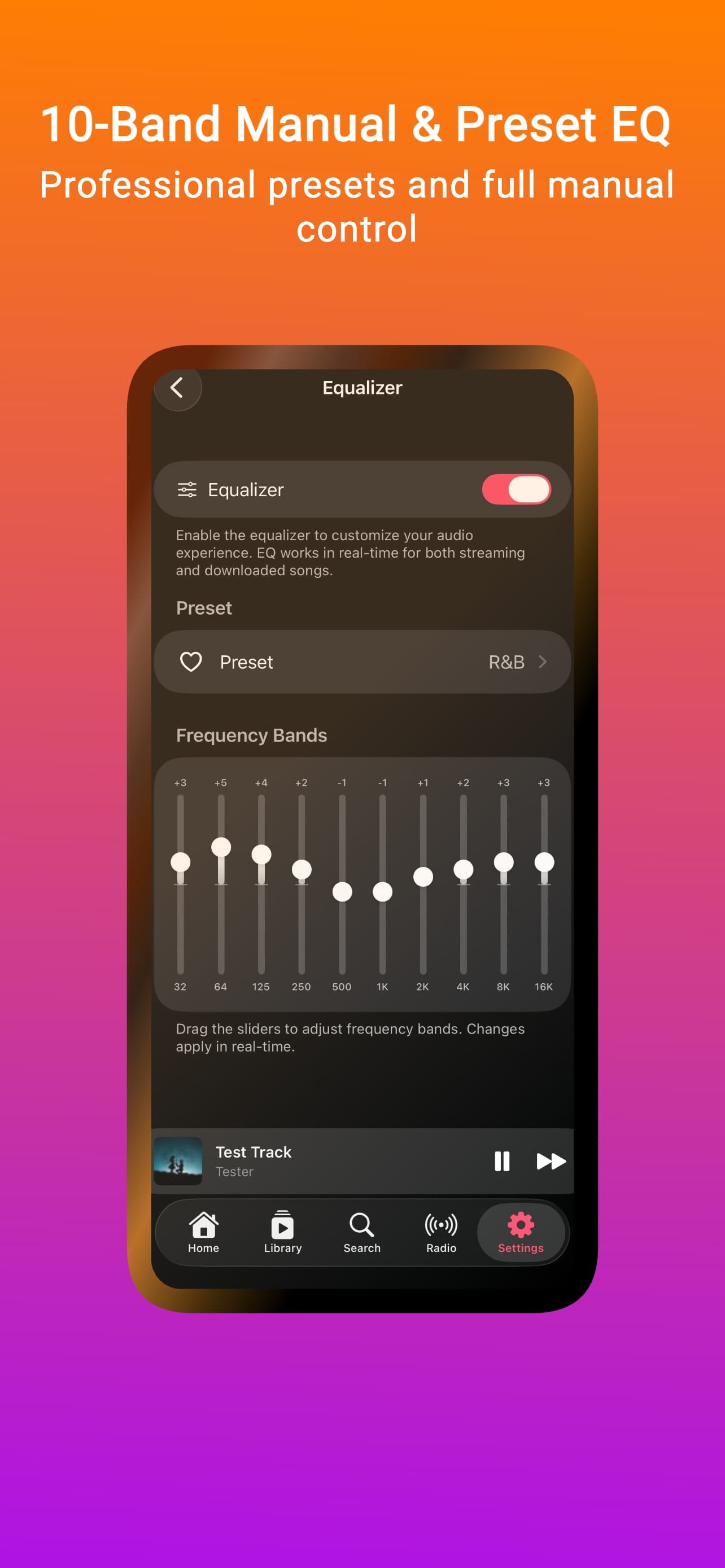 - 10-Band Manual & Preset EQ - Shape your sound precisely with a studio-grade equalizer, including professional presets and full manual control.
