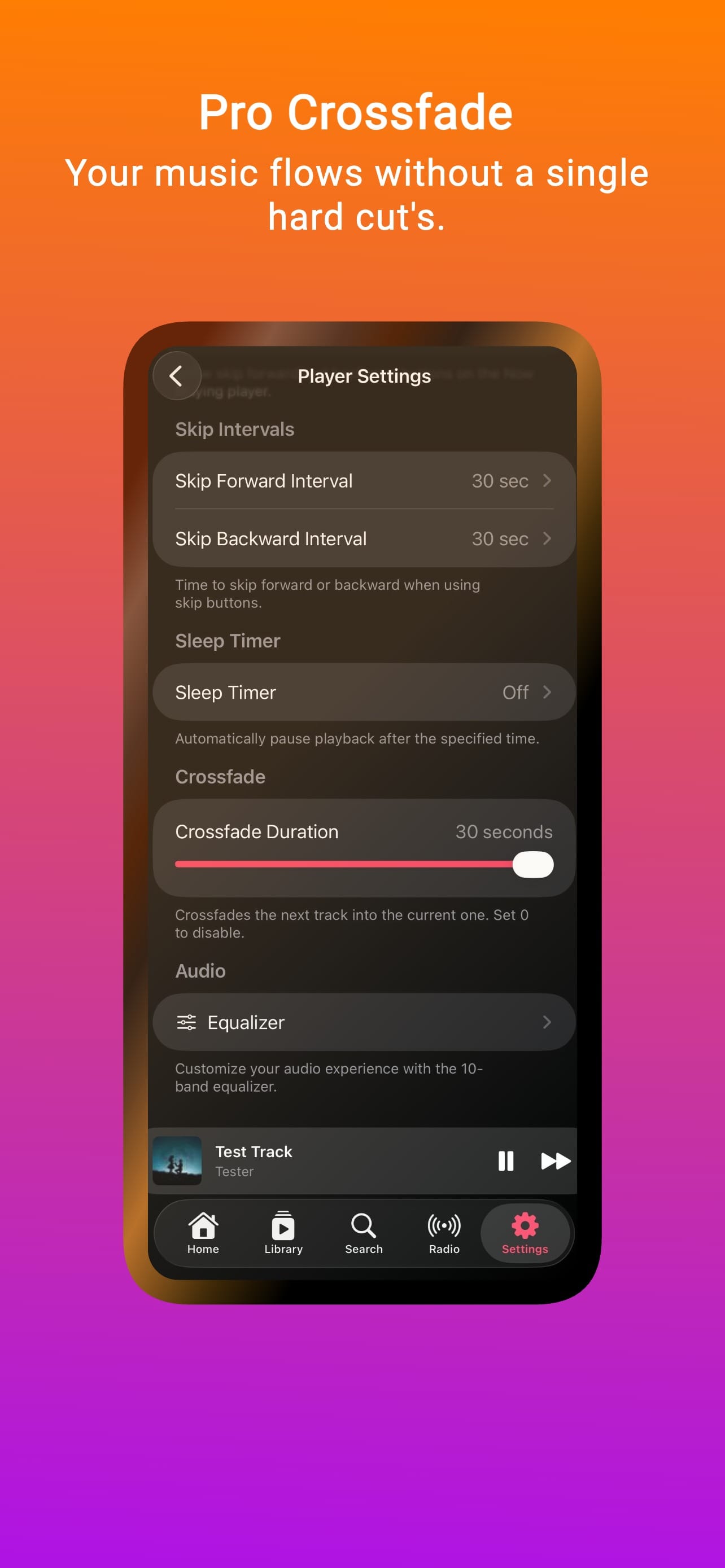 - Pro Crossfade - Enjoy smooth transitions between songs with artwork and title fading—your music flows without a single hard cut's.